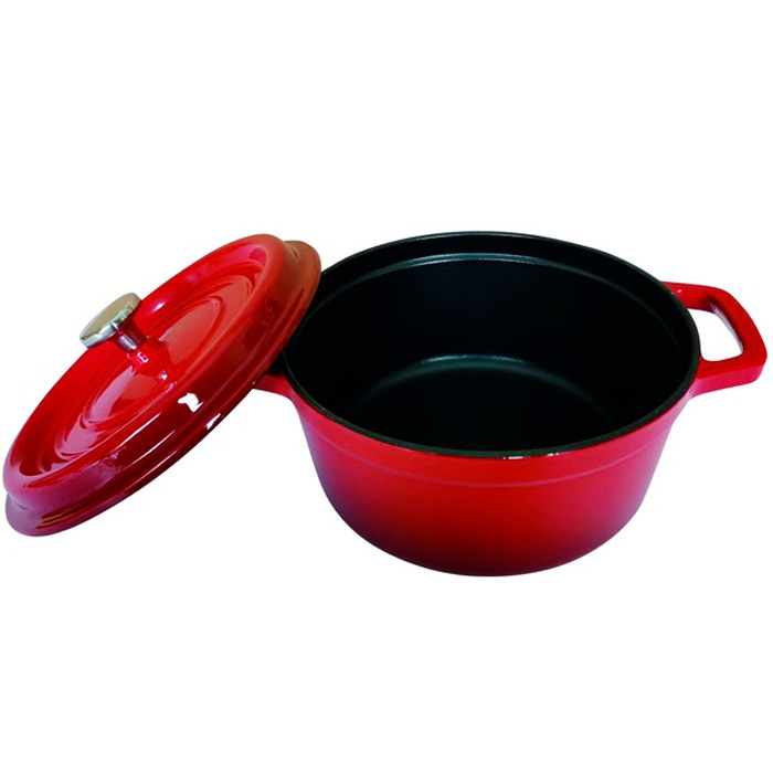 Каструля чавунна з кришкою Ringel Essen 26 см 4.8 л RG-2300-26 виготовляється з екологічно чистих матеріалів. Внутрішнє емальоване покриття полегшує догляд за каструлею та запобігає прилипанню продуктів. Чавун забезпечує правильний розподіл тепла, що дозволяє ідеально приготувати страви до столу. Ручка кришки виготовлена із нержавіючої сталі. Каструля підходить для приготування різних страв - від смаження м'яса до тушкування овочів та приготування супів.