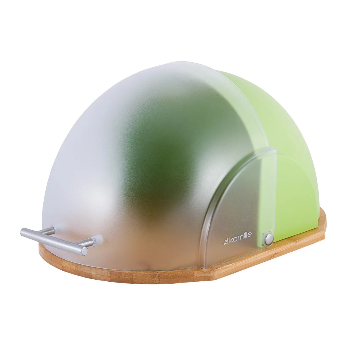 Хлібниця комбінована Kamille 1100 - це зручна і практична хлібник, якій буде рада будь-яка господиня. Виготовлена з двох частин: бамбуковій дошки овальної форми і знімною пластикової кришки. Дошку можна застосовувати як обробну, а кришкою закривати не тільки хліб, а й інші продукти. Хлібниця легко миється, не вбирає запахи, і охороняє продукти від засихання, зайвої вологи, попадання пилу та комах. Хлібниця має відмінний дизайн, тому впишеться в кухню з будь-яким інтер'єром.