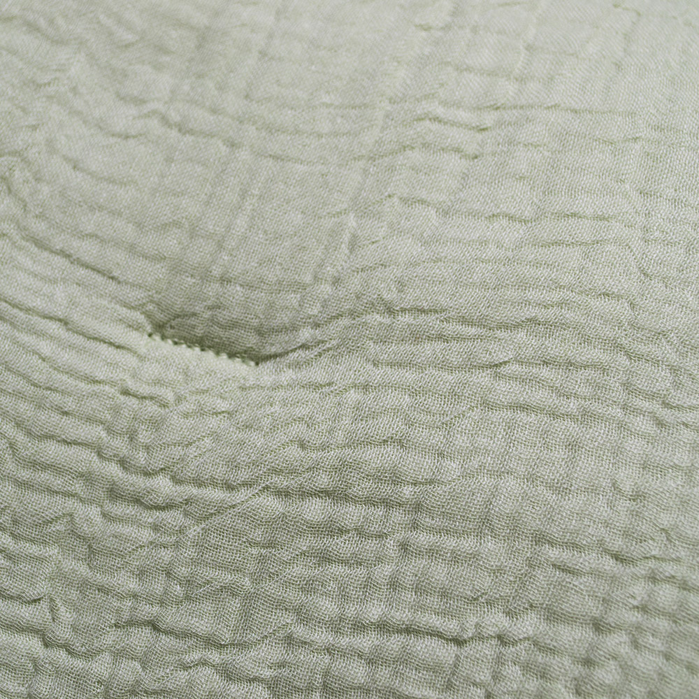 Стильне двостороннє покривало з мусліну. Одна сторона виробу - м'ятного кольору, а інша - молочного кольору. Покривало стане красивим акцентом у кімнаті, відмінно доповнить сучасний інтер'єр. Покривало виконано з ніжного 4-шарового мусліну (100% бавовна) з рельєфною текстурою. Тканина приємна на дотик, прекрасно пропускає повітря, водночас міцна і зносостійка в експлуатації. Як наповнювач використовується м'яке і практичне мікроволокно.