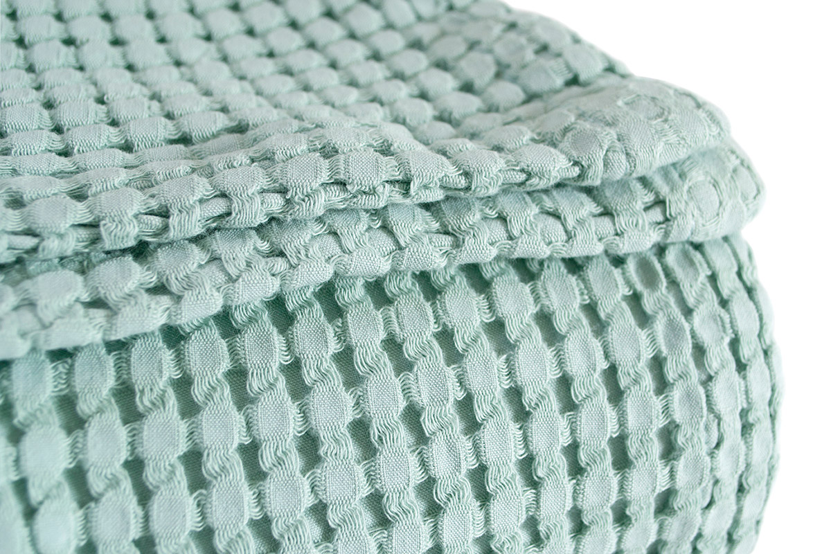 Стильне доповнення до вашого інтер'єру - однотонне покривало-піке м'ятного кольору. Покривало виготовлене з натуральної бавовняної тканини з гарною рельєфною текстурою. Матеріал легкий, м'який і приємний на дотик, добре пропускає повітря, дарує відчуття комфорту. Покривало стане незамінним для створення затишної атмосфери в кімнаті, а також може використовуватися для вкривання в теплу пору року.