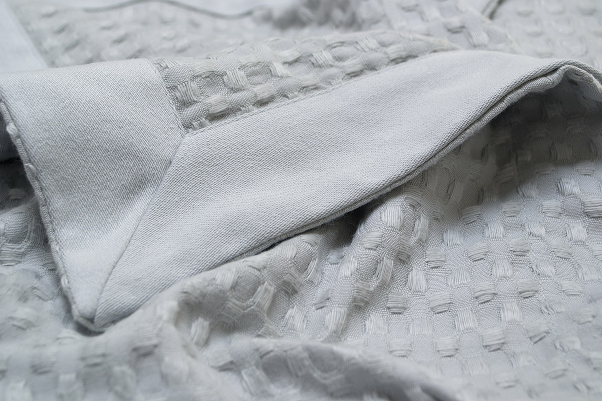Легке однотонне покривало сірого кольору із гарною рельєфною вафельною фактурою. Виріб стане стильним акцентом в інтер'єрі, подарує вам затишок та комфорт під час відпочинку. Покривало м'яке і приємне на дотик, виконане з високоякісної натуральної бавовняної тканини.