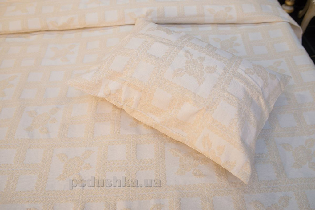 Вишукане покривало бежевих відтінків з жакардовим квітковим візерунком зробить вашу спальню затишною і неповторною. Покривало виконано з щільного якісного матеріалу, має тривалий термін служби.