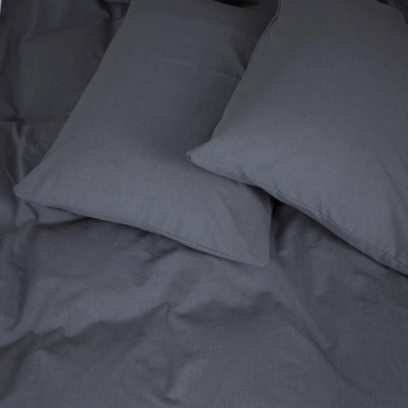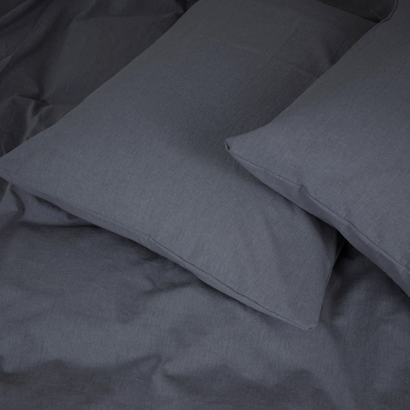 Однотонна наволочка темно-сірого кольору, виконана з тканини Washed Cotton. Наволочка м'яка, приємна на дотик, комфортна, прекрасно пропускає повітря. Washed Cotton (варена бавовна) - це 100% натуральна тканина, яка набуває неймовірної м'якості завдяки спеціальній технології обробки гарячою водою. Матеріал стає дуже приємним, зі злегка м'ятою фактурою, стійким до усадки.