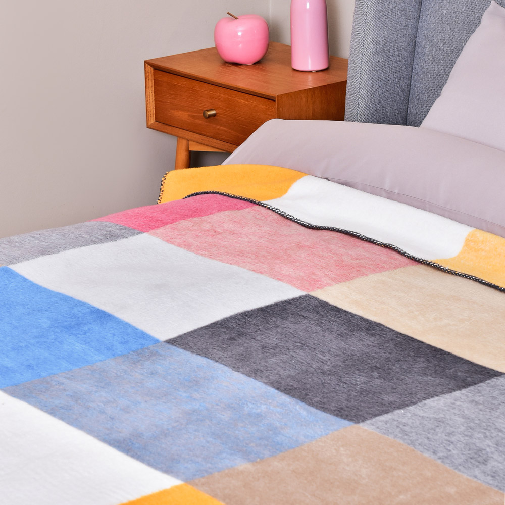 Бавовняний плед-покривало з різнокольоровими квадратами стане стильним рішенням для будь-якого інтер'єру. Плед виконаний з якісної тканини на основі бавовни та штучних волокон. Це забезпечує йому м'якість, антиалергенні властивості, а також практичність експлуатації. Плед подарує відчуття затишку, тепла та комфорту. Пледи не вимагають особливого догляду, добре витримують прання та надовго зберігають первісний вигляд.