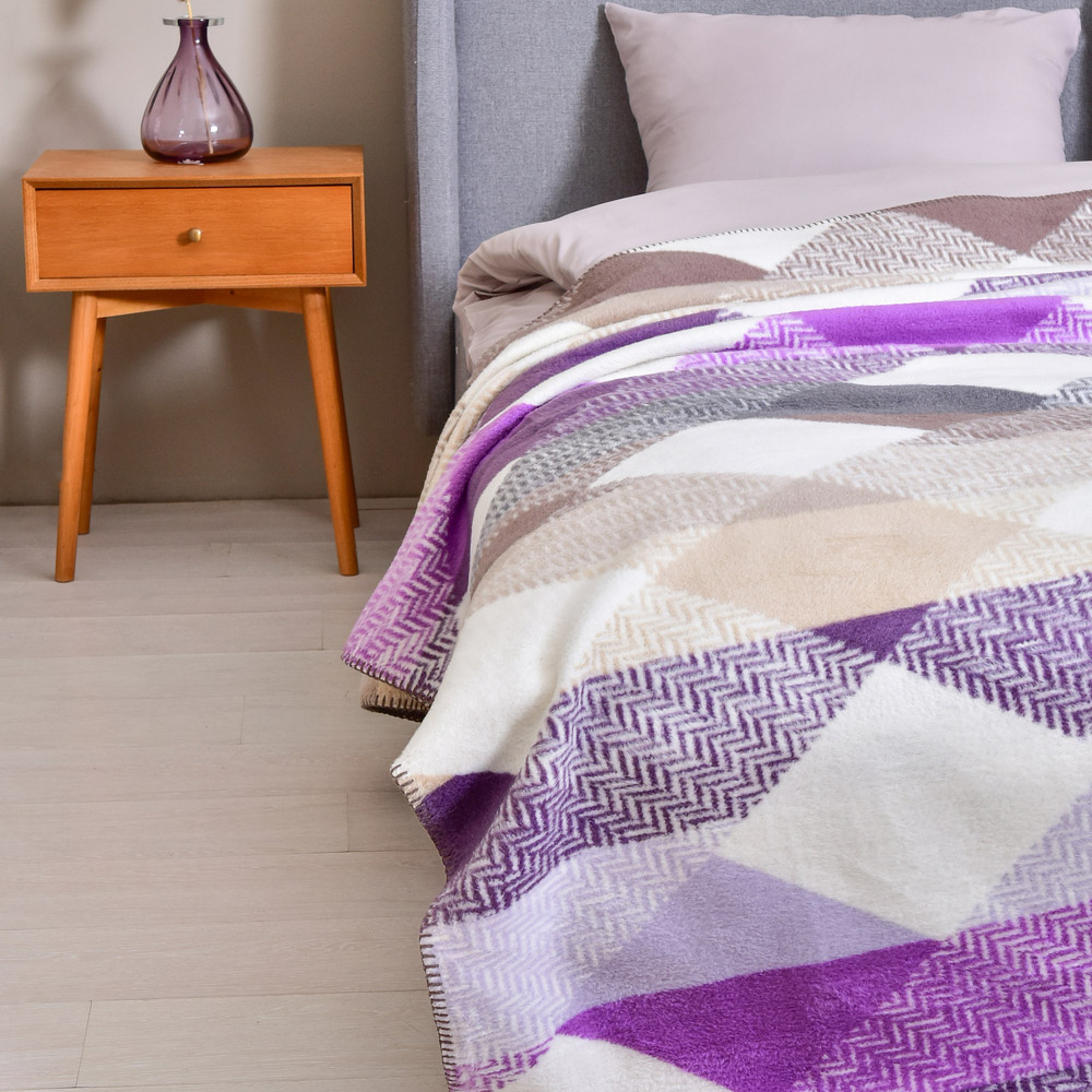 Бавовняний плед-покривало в лілово-бежевій гамі з красивим геометричним візерунком. Виріб стане стильним рішенням для будь-якого інтер'єру. Плед виконаний з якісної тканини на основі бавовни та штучних волокон. Це забезпечує йому м'якість, антиалергенні властивості, а також практичність експлуатації. Плед подарує відчуття затишку, тепла та комфорту. Пледи не вимагають особливого догляду, добре витримують прання та надовго зберігають первісний вигляд.