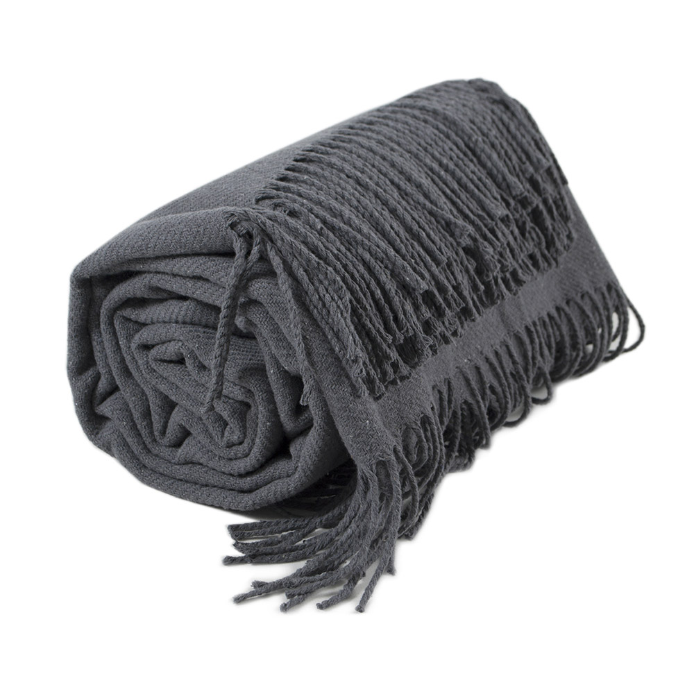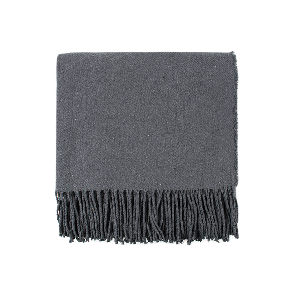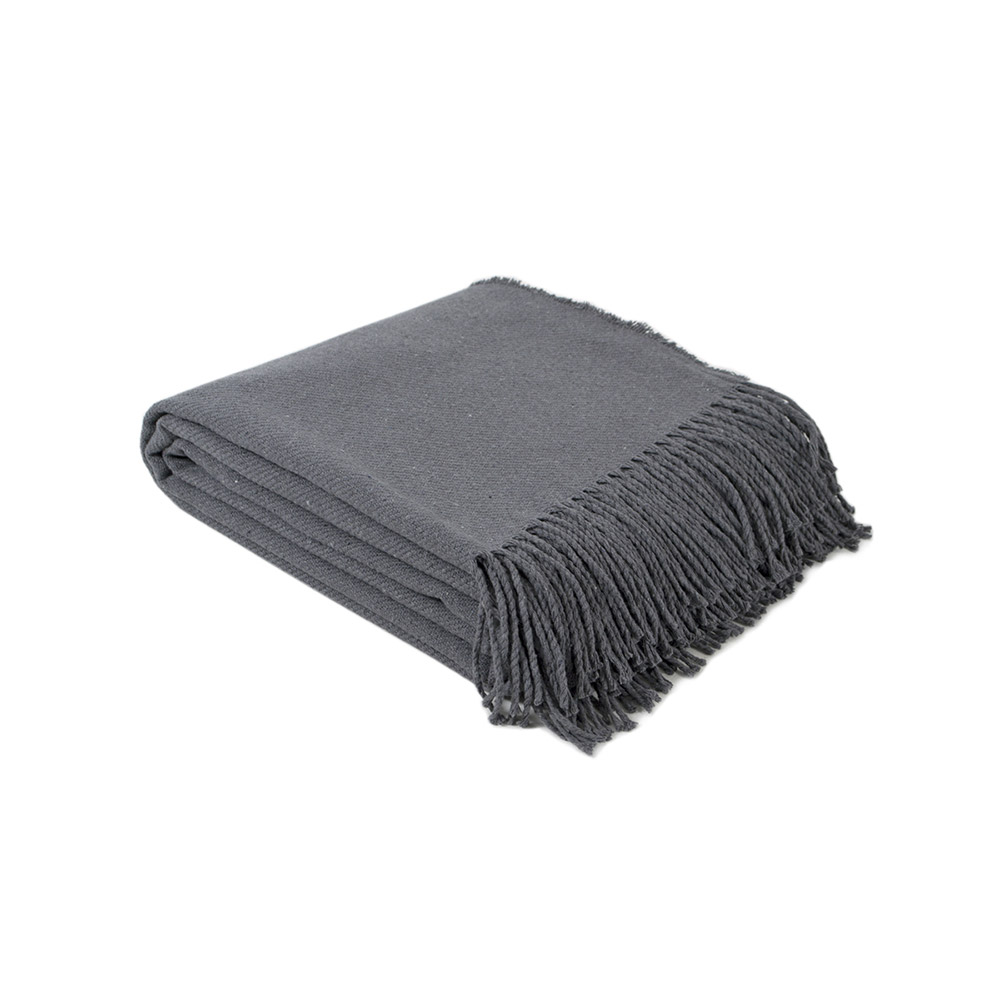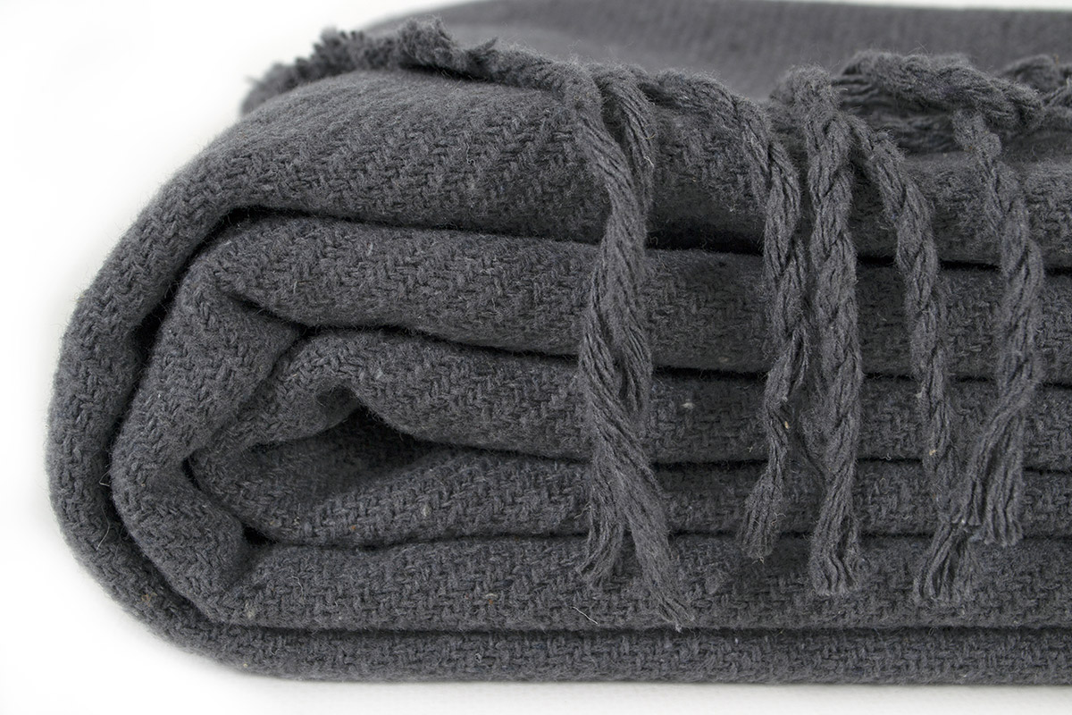 Однотонний плед антрацитового кольору з бахромою. Бавовняний плед стане стильним рішенням для будь-якого інтер'єру. Плед виконаний з якісної тканини на основі бавовни та поліестеру. Це забезпечує йому м'якість, антиалергенні властивості, а також практичність в експлуатації. Плед подарує відчуття затишку, тепла і комфорту.