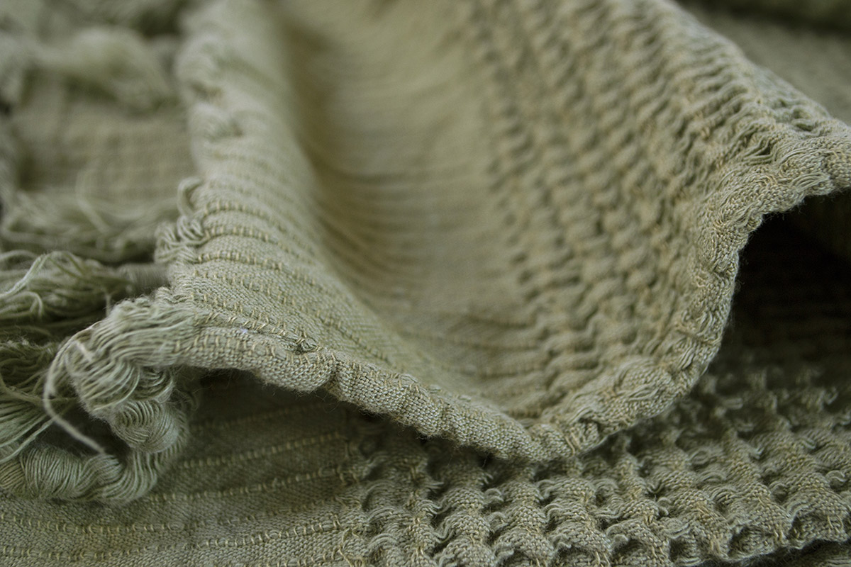 Однотонний легкий плед оливкового кольору з красивою рельєфною текстурою і бахромою. Плед чудово доповнить будь-який інтер'єр, стане стильним акцентом у кімнаті. Якісний і приємний на дотик матеріал з натуральних волокон бавовни і бамбука подарує відчуття комфорту.