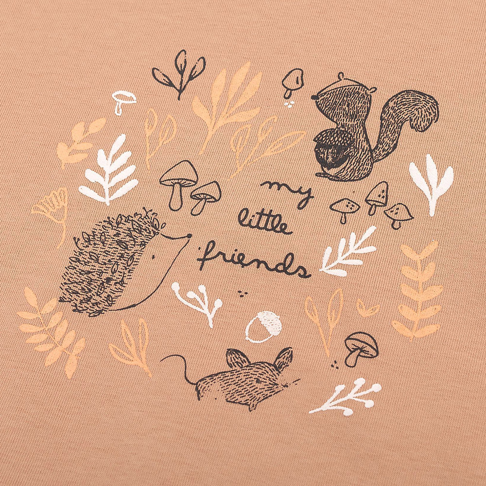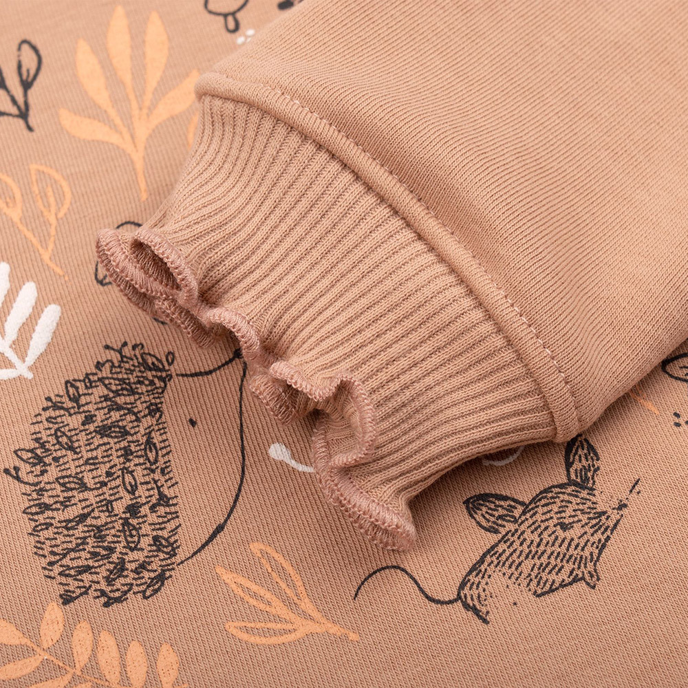 Трикотажний джемпер бежевого кольору. Спереду симпатичний принт. Модель підійде для дівчинки. Джемпер виконаний з якісної трикотажної тканини. Матеріал з бавовни з додаванням поліестеру м'який і приємний, комфортний і теплий, практичний, ідеально підійде для повсякденного носіння.