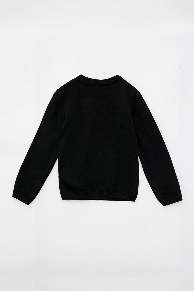 В'язаний джемпер чорного кольору з тигром. Модель універсальна, підійде і для хлопчика, і для дівчинки. Джемпер стане чудовою базою для створення стильного образу. Джемпер м'який на дотик, затишний і комфортний, виконаний з якісної акрилової пряжі.