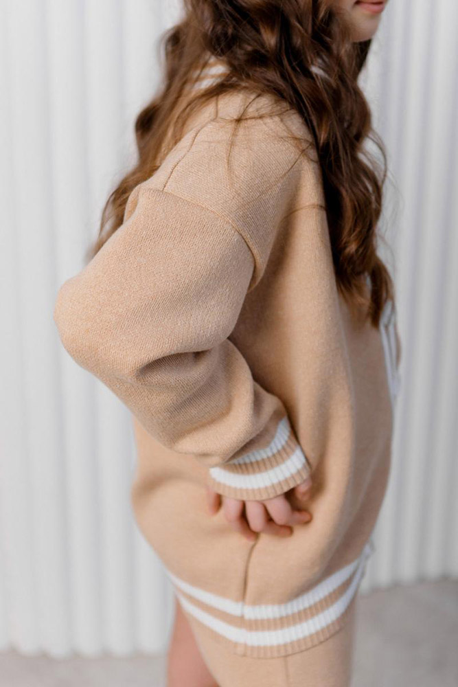 Кардиган для дівчинки Art Knit бежевий зі смужками.