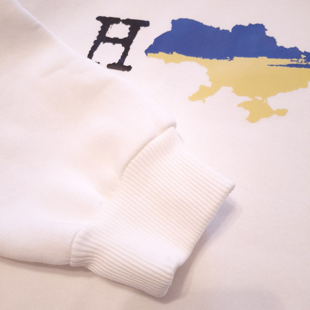 Утеплене худі оверсайз — стильна і комфортна модель для повсякденного носіння. Худі білого кольору з виразним патріотичним акцентом. Вільний крій забезпечує повну свободу рухів, а м'який флісовий начіс всередині дарує тепло і затишок у прохолодну пору року. Худі виконано з якісної тканини, приємної до тіла, яка добре зберігає форму і відрізняється зносостійкістю.