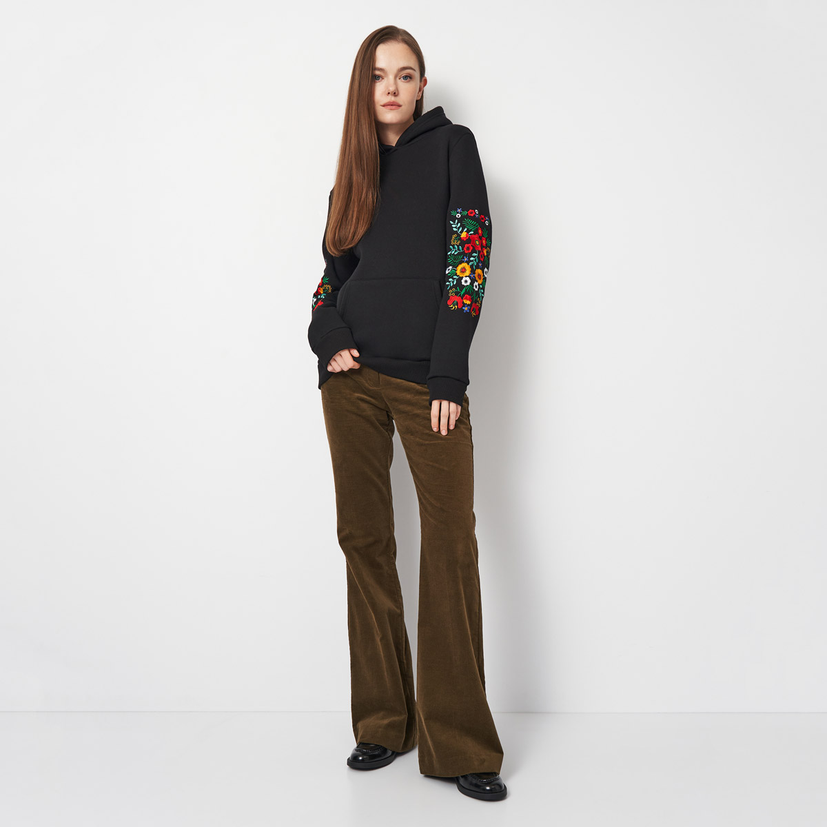 Жіноче худи Магнолія від ТМ Lesia – класичне худи з м'якого та теплого трикотажу. Вільний крій, велика кишеня-кенгуру, манжети із еластичного полотна. Яскрава машинна вишивка на рукавах зберігає вигляд після прання. Чорний колір легко поєднується із базовим гардеробом. Ідеально для повсякденного носіння у місті та на відпочинку. Lesia - український бренд одягу, що пропонує асортимент для жінок, чоловіків і дітей. Бренд створює повсякденний і сезонний одяг, поєднуючи актуальні тенденції, комфорт і якісні матеріали. Lesia робить акцент на практичності, зручності крою та доступності, тому вироби підходять для щоденного носіння всією родиною. Продукція бренду орієнтована на сучасний ритм життя і різні вікові категорії.