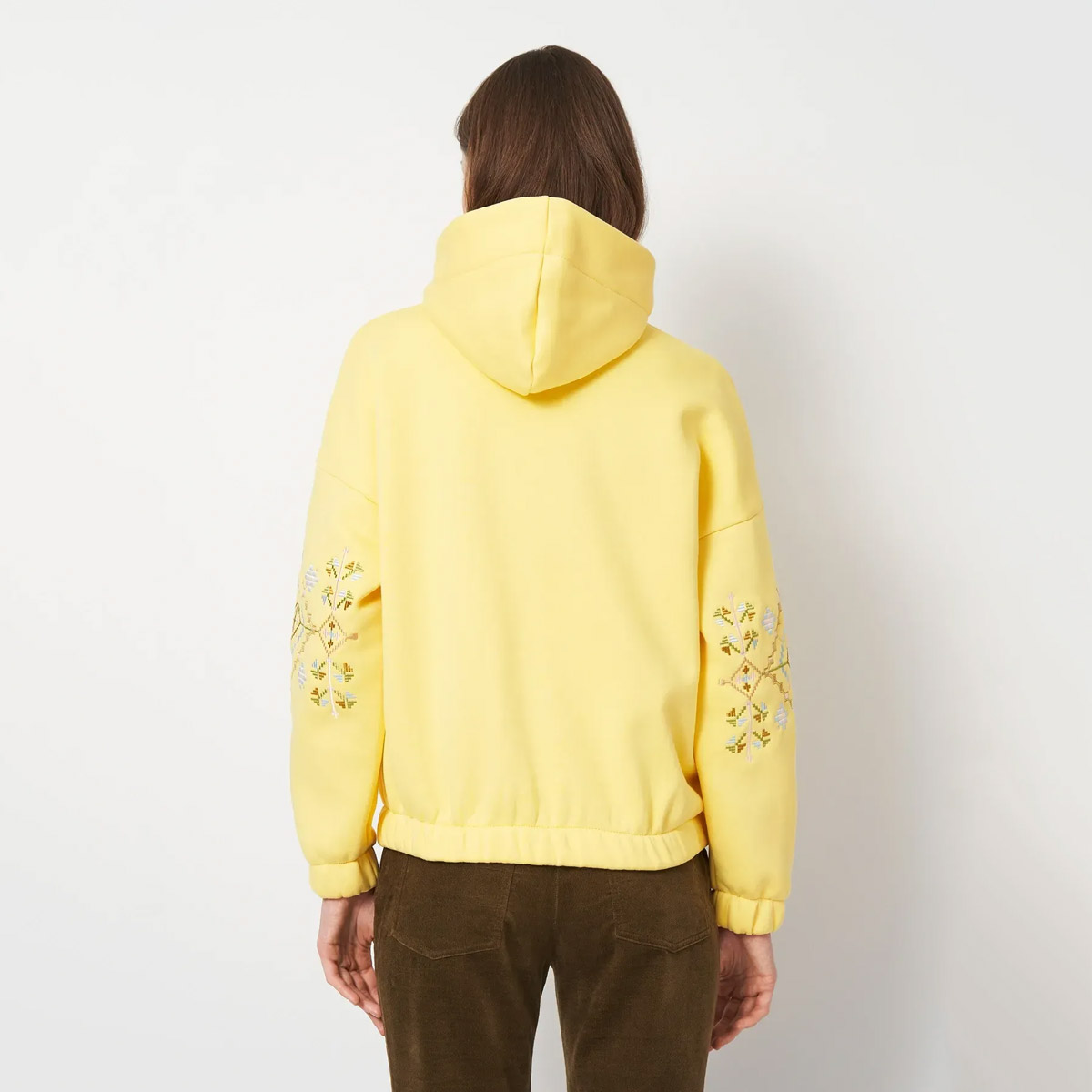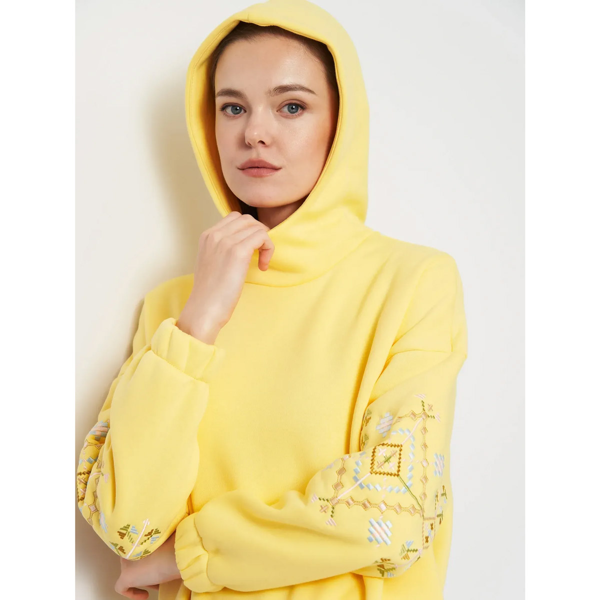 Жіноче худи Поділля від ТМ Lesia – вільне худи з м'якого та теплого трикотажу тринитка чесана. Спущене плече, стильний капюшон, приховані бічні кишені, низ та рукави на м'якій резинці. Яскрава машинна вишивка гладдю зберігає вигляд після прання. Худі поєднує зручність спортивного стилю з естетикою української вишивки. Ідеально для повсякденного носіння у місті та на відпочинку.