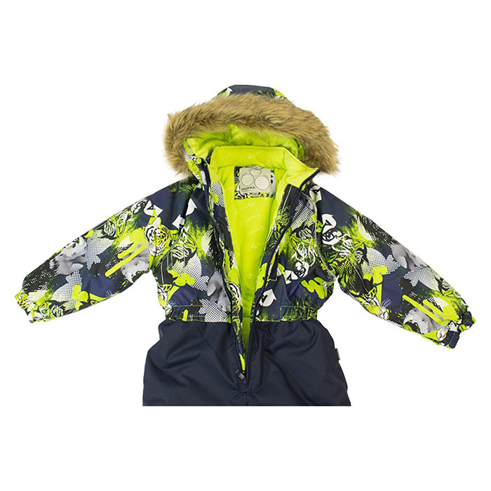 Детский зимний термокомбинезон WILLY Huppa 31900030 лайм-синий очень теплый, не требующий дополнительного поддева. Основные швы с водонепроницаемой отделкой. Отстегивающийся капюшон с мехом.