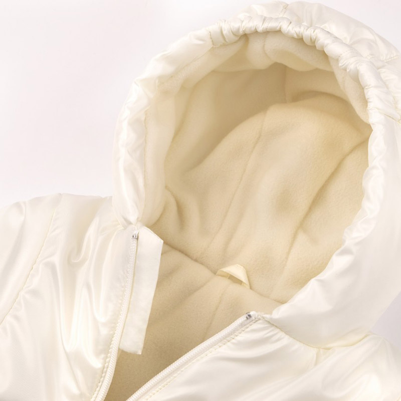 Демісезонний комбінезон молочного кольору. Модель універсальна, підійде і для хлопчика, і для дівчинки. Комбінезон зі зручною застібкою-блискавкою, капюшоном і закритими ніжками. Виготовлений з якісної плащової тканини на утеплювачі та на флісовій підкладці.