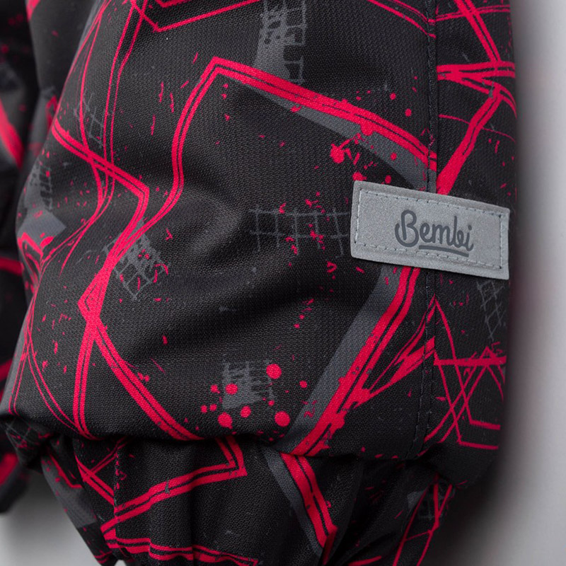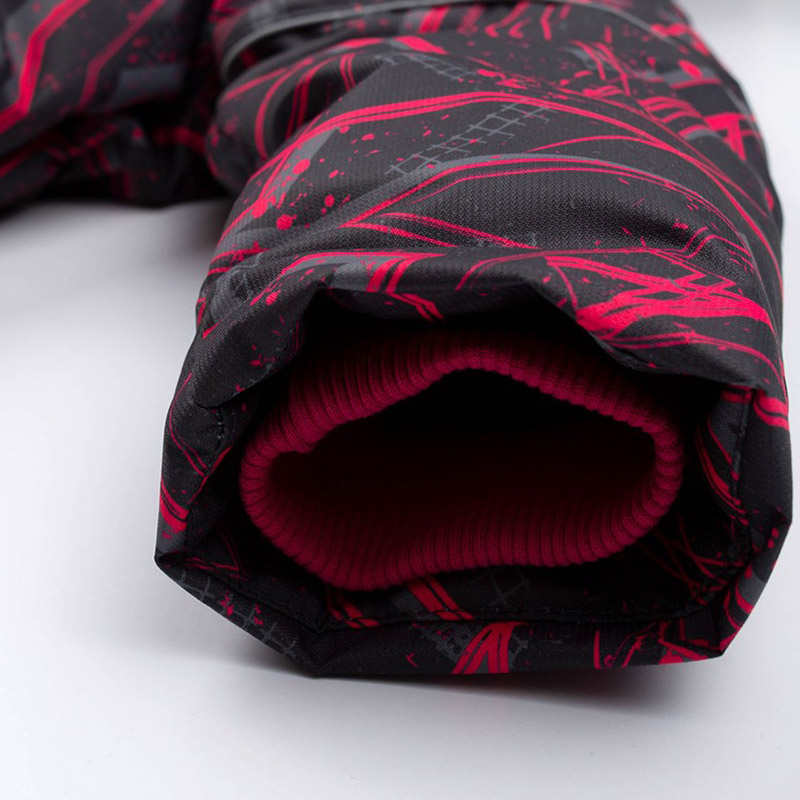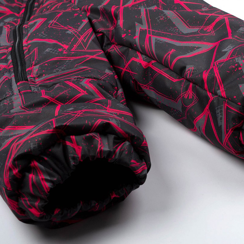 Теплий зимовий комбінезон у графітово-малиновому кольорі з модним абстрактним принтом. Модель універсальна, підійде і для хлопчика, і для дівчинки. Комбінезон зі світловідбивною застібкою-блискавкою. Виготовлений із водовідштовхувальної та вітростійкої плащової тканини на утеплювачі. Підкладка з флісу. Рукава і низ штанин на гумці. Капюшон фіксується широкою липучкою.