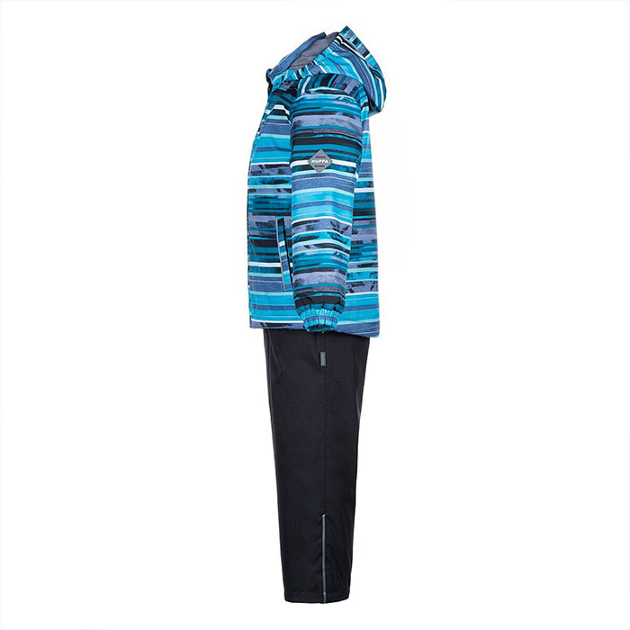 Дитячий комплект YOKO Huppa 41190014 блакитна смужка. Комфортний комплект складається з куртки та напівкомбінезону. Куртка закривається на блискавку. Є внутрішня планка з мембранною тканиною по всій довжині блискавки. Із зовнішнього боку блискавка з двох сторін прикрита мембранною тканиною. Є додатковий захист підборіддя від блискавки. Куртка має дві бічні кишені. Знімний каптур (на кнопках). Капюшон із гумкою. Комірець стійка. Манжети рукавів на резинці. Регулювання ширини низу куртки (еластичний шнур). Напівкомбінезон на блискавці із підтяжками. Сідельний шов посилено проклеєний. Без внутрішніх швів На талії з боків та ззаду гумка. На внутрішній частині низ штанів має мембранну тканину. Ширина низу з регулюванням (еластичний шнур із фіксатором). Гумові, еластичні підтяжки. Підтяжки із регулюванням довжини. Усі шви з додатковою обробкою. Додано світловідбивні елементи з високими показниками стандартів безпеки CE EN 13356, EN ISO 20471, що дозволяє бути помітним у темний та похмурий період часу. Має водо та брудовідштовхувальне покриття BIONIC-FINISH. Комплект комфортний, модний, стильний, зручний в експлуатації, вітронепроникний, має високу зносостійкість - 60 000 циклів за тестом Мартіндейла, добре утримує тепло всередині, виводить надлишкові пари назовні, "дихає", створює для кожного свій індивідуальний внутрішній мікроклімат, гіпоалергенний, легкий, простий у догляді, підходить для щоденного використання на вулиці за температури від +5 градусів Цельсія до -5 морозу.