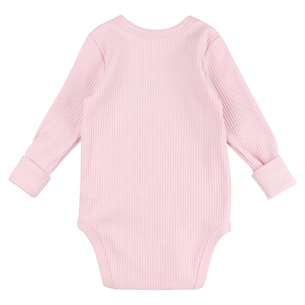 Боді застібається на кнопки в плечовому шві та між ніжками. Рукава довгі, на манжетах із відворотом.
