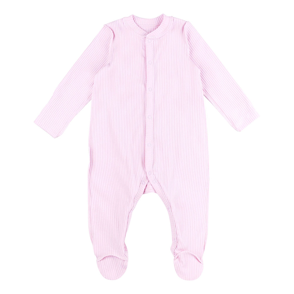 Набір рожевого кольору, виконаний з тканини трикотаж-рубчик з рельєфними смужками. Матеріал з натуральної бавовни, м'який і приємний на дотик, подарує дитині максимальний комфорт і затишок.
