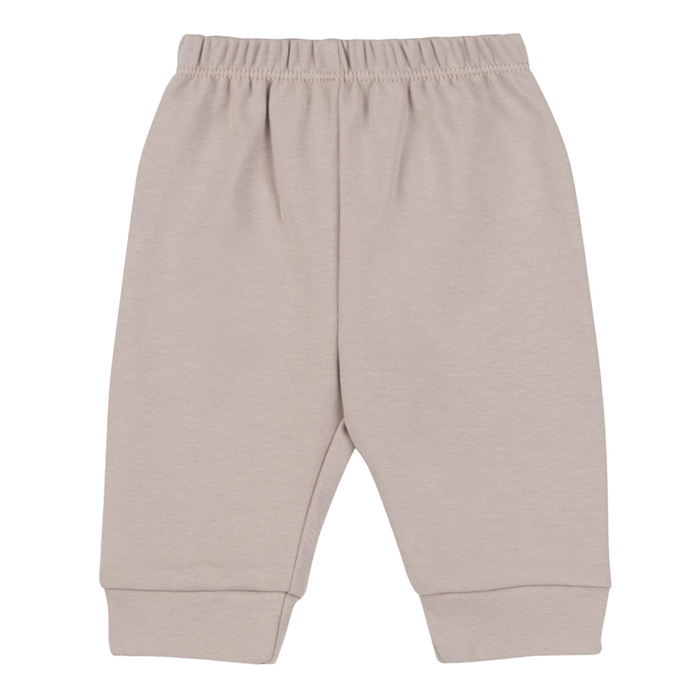 Комплект для малюка в біло-бежевій гамі. Набір складається з кофтинки, штанців, боді та шапочки. Кофта з класичним круглим коміром, застібається на кнопки. Штани на еластичній гумці з манжетами знизу. Боді з коротким рукавом. Шапка підвернута і зав'язаний декоративний вузол. Комплект йде в подарунковій упаковці.