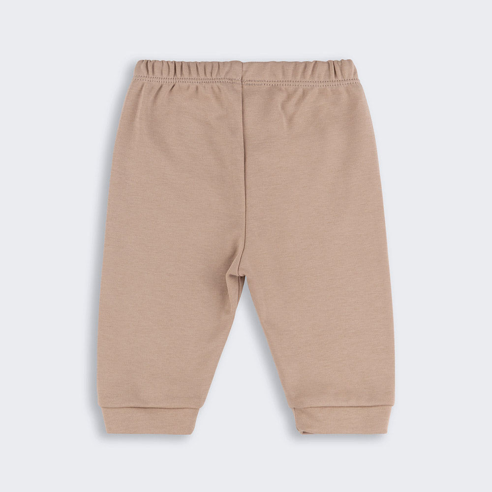 Комплект у молочно-бежевому кольорі. Комплект універсальний (підійде і для хлопчика, і для дівчинки). У наборі - чоловічок, штанці, шапочка, боді. Чоловічок молочного кольору з принтом, по всій довжині застібається на кнопки. Штани однотонні, бежевого кольору, на еластичній гумці, знизу манжети. Боді однотонне, молочного кольору, застібається на кнопки на плечі та внизу. Шапочка однотонна, бежевого кольору.