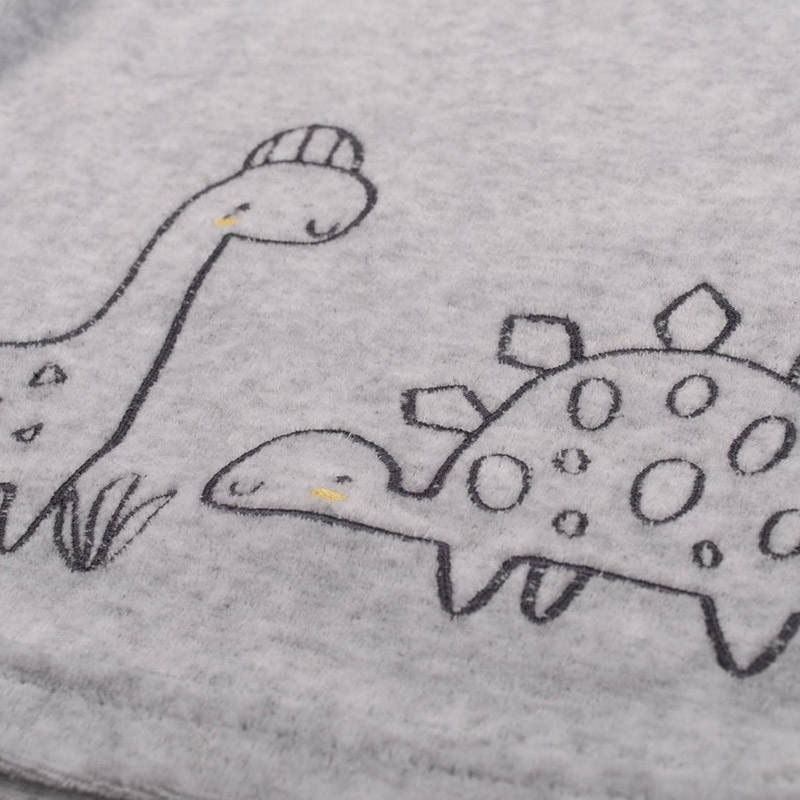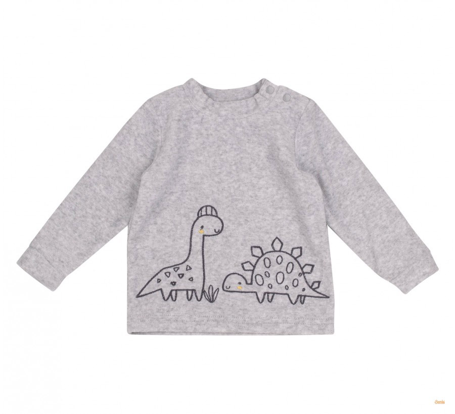 Джмпер із симпатичним принтом із динозавриками, на плечі застібається на кнопки. Штани зі зручною гумкою на поясі.