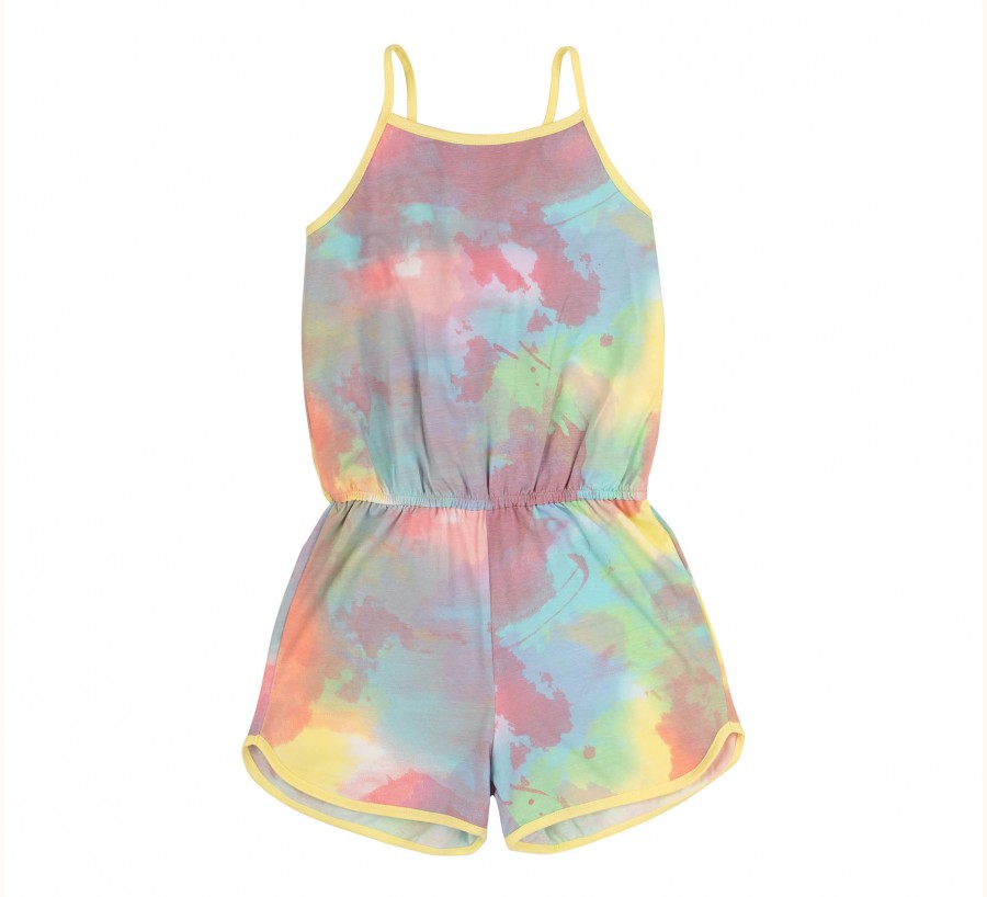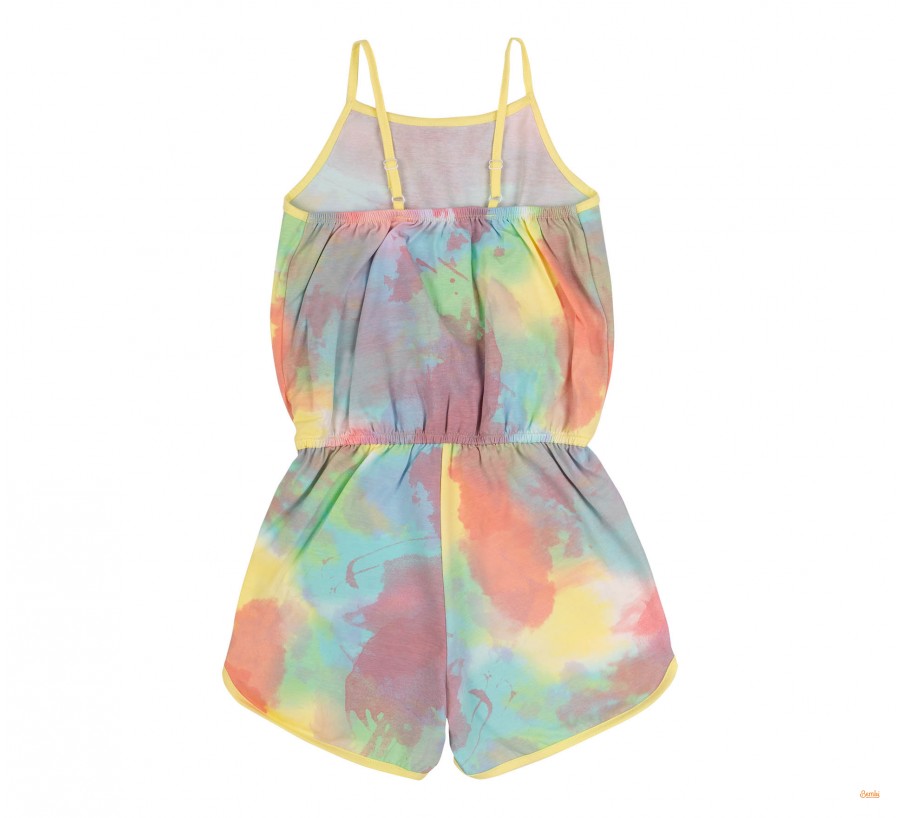 Напівкомбінезон для дівчинки Bembi ПК196 супрем кораловий. Напівкомбінезон для дівчинки. Модель середньої довжини на тонких бретелях по талії гумка. Тканина еластична в малюнок.