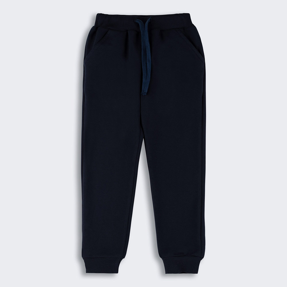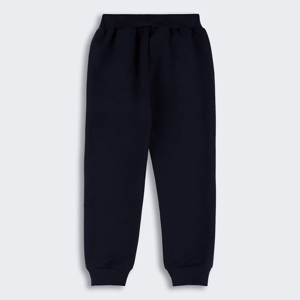 Трикотажний костюм (джемпер і штани). Костюм виконаний з тканини трикотаж-двунитка, що складається на 100% з натуральної бавовни. Це забезпечує максимальний комфорт і м'якість під час носіння, роблячи його ідеальним вибором для дитини. Костюм стане не тільки модним елементом дитячого гардероба, а й практичним одягом для повсякденних занять та ігор. Джемпер у комбінованому сіро-блакитному кольорі, декорований аплікацією. Штани однотонні, темно-синього кольору, з бічними прорізними кишенями, пояс на широкій зручній гумці.