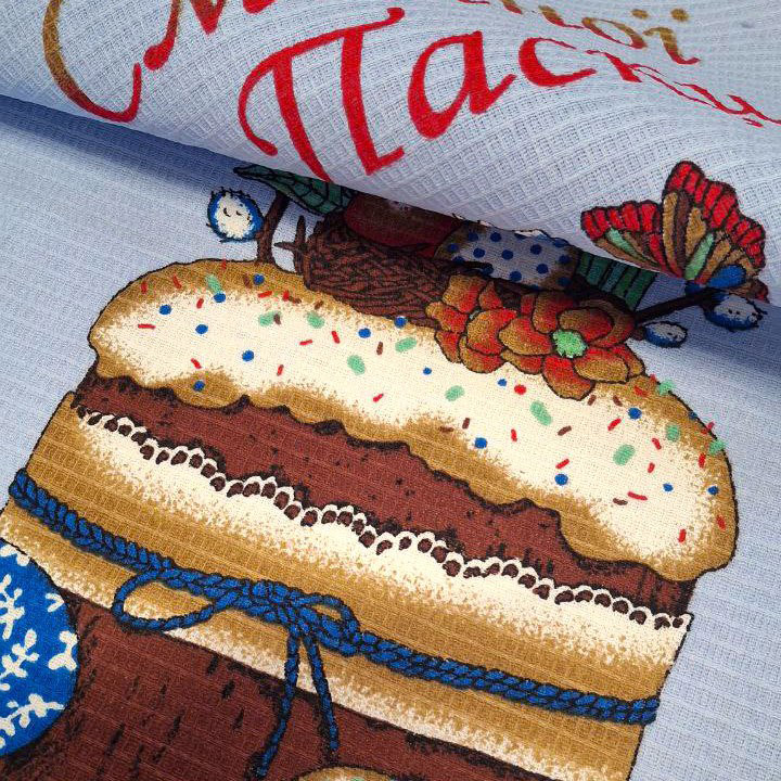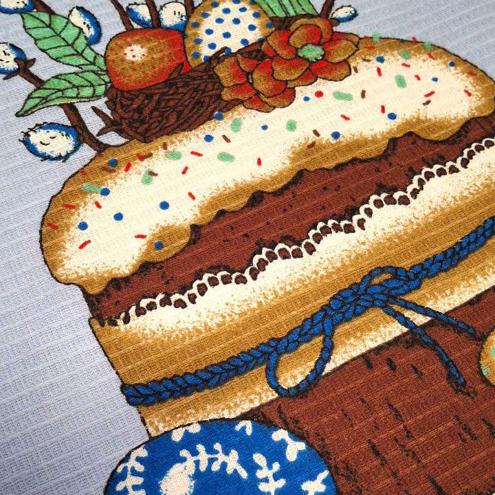 Рушник великодній вафельний кухонний Смачної паски Emily блакитний