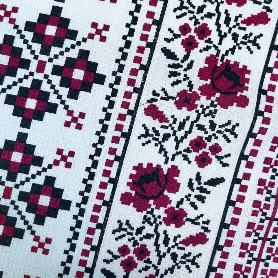 Рушник вафельний кухонний Традиції ТМ Emily червоний. Рушник для кухні з оригінальним візерунком, виготовлений з натуральної бавовни та має текстуру вафельного переплетення. Цей вафельний рушник швидко вбирає вологу, скоро сохне, і ніжно пестить шкіру рук своєю приємною фактурою. Крім того, воно має високу зносостійкість і здатне витримувати багаторазове прання.