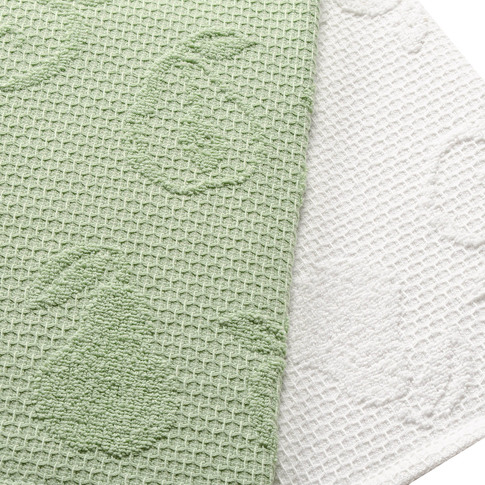Чудовий набір із двох рушників, які стануть незамінними помічниками на кухні. Рушники виконані з натуральної бавовняної тканини з рельєфною текстурою, декоровані рельєфним малюнком (яблука та груші). Один рушник білого кольору, а інший — зелений. Рушники легкі та приємні на дотик, відмінно вбирають вологу та швидко сохнуть. Вироби практичні та міцні, служать довгий час без втрати якості.