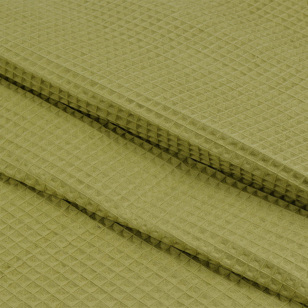 Натуральний бавовняний рушник оливкового кольору з рельєфною вафельною фактурою. Вироби зі 100% бавовни легкі та приємні на дотик, відмінно вбирають вологу та швидко сохнуть, стануть незамінними на кухні.