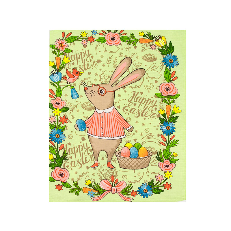Чудовий великодній набір складається з 3 рушників. Вироби салатового кольору з красивими святковими принтами із зайчиками, квітами та писанками. Рушники виконані з натуральної бавовняної тканини з рельєфною вафельною фактурою. Вироби легкі та приємні на дотик, добре вбирають вологу і швидко сохнуть, практичні та довговічні в експлуатації.
