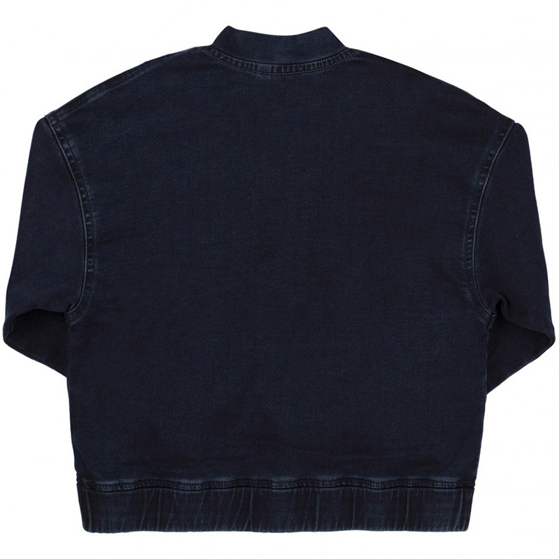 Стильна джинсова курточка темно-синього кольору. Модель універсальна, підійде і для хлопчика, і для дівчинки. Куртка з центральною застібкою-блискавкою і двома великими накладними кишенями з клапанами. Низ куртки і низ рукавів - на гумці. Куртка виконана з якісної трикотажної джинсовки. Тканина на 97% складається з бавовни, щільна, приємна і комфортна, практична і довговічна в експлуатації.