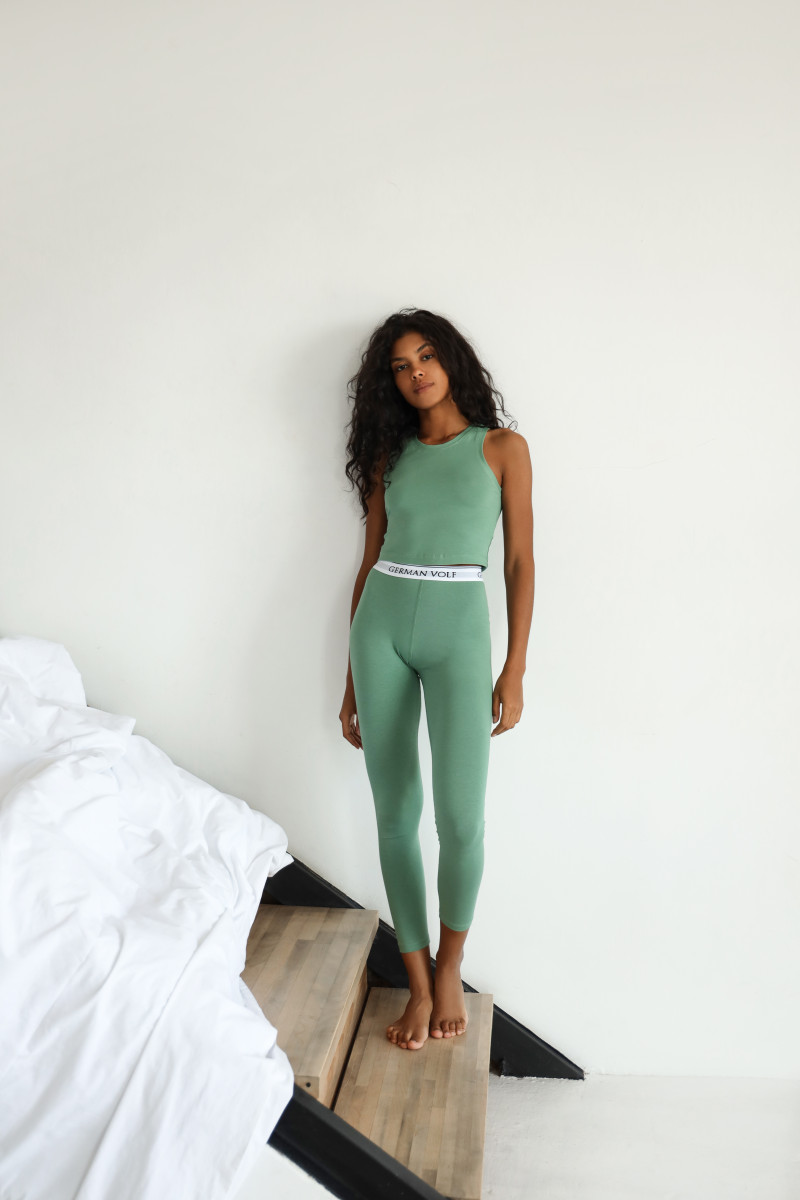 Лосини базові жіночі German Volf зелений. Лосини на широкій гумці-поясі - це одна з найкомфортніших опцій для повсякденного носіння. Вони забезпечують свободу рухів та не сковують ноги, що особливо важливо в активному житті сучасної жінки. Завдяки натуральній бавовні, лосини підходять для носіння протягом усього року. У теплу пору року вони будуть прохолодними та комфортними, а взимку можна комбінувати їх із теплим верхнім одягом. Лосини виготовлені з натуральної бавовни, що забезпечує їх м'якістю, здатністю, що дихає, і комфортом. Додавання еластану надає матеріалу еластичність, дозволяючи лосинам ідеально облягати фігуру і зберігати форму навіть після багаторазового прання.