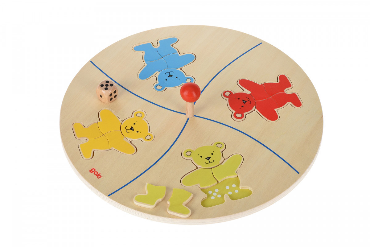 Настільна гра goki Веселі ведмедики 56941G - гра на пам'ять, уважність, логіку й удачу. У настільну гру необхідно грати вчотирьох. Мета гри - якомога швидше скласти фігурку ведмедика з п'яти деталей. Для цього необхідно кидати кубик і вибирати фрагменти фігурки. Будьте уважні, адже несподівано гра може змінитися і тепер ви повинні складати фігурку ведмедика іншого кольору. Рекомендований вік учасників: 3+. Виробник-німецький бренд goki, авто якісних, корисних, розвиваючих, безпечних іграшок, виготовлених з сертифікованих матеріалів.