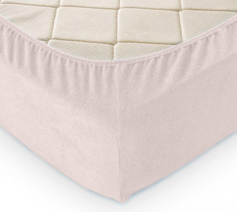 Натяжне однотонне простирадло кольору пудри. Простирадло виконане з натуральної бавовняної махри. Тканина м'яка та приємна на дотик, забезпечує затишок та комфорт під час сну. Завдяки гумці простирадло легко та швидко одягається на матрац, добре фіксується, не сповзає під час експлуатації.