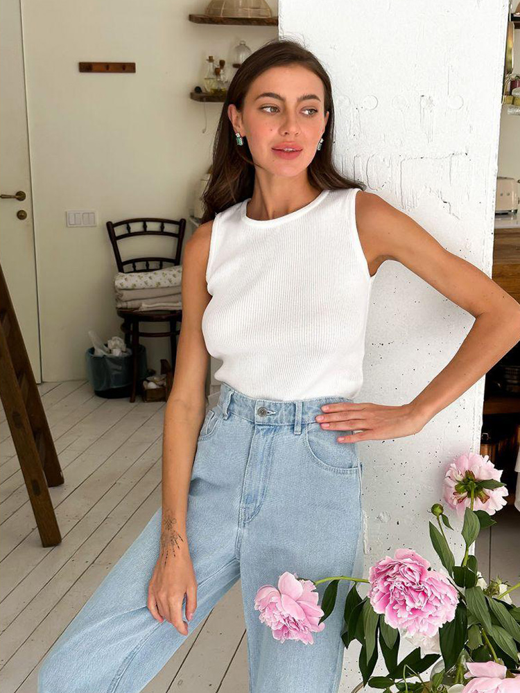 Стильна біла однотонна майка. Майка чудово підійде для повсякденного носіння, стане відмінною базою для створення модних образів. Однотонний дизайн робить майку універсальною, легко поєднується з різним одягом та аксесуарами. Тканина з віскози та акрилу приємна до тіла, легка, не парить, забезпечує комфорт та затишок, водночас практична та довговічна в експлуатації.