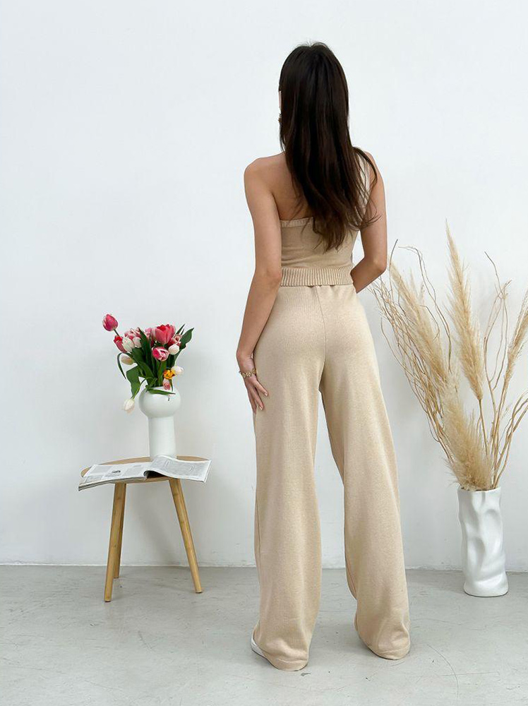 Топ в'язаний жіночий з косими лямками Joy Art Knit бежевий.