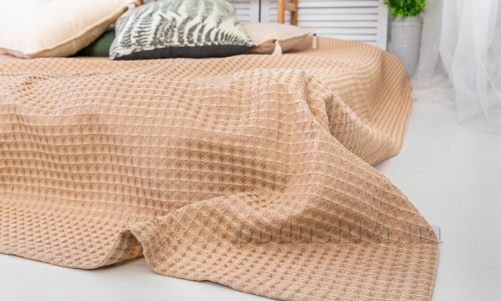 Однотонне покривало приємного світло-коричневого кольору з красивою рельєфною фактурою. Покривало чудово доповнить інтер'єр спальні і зробить ваш будинок більш затишним.