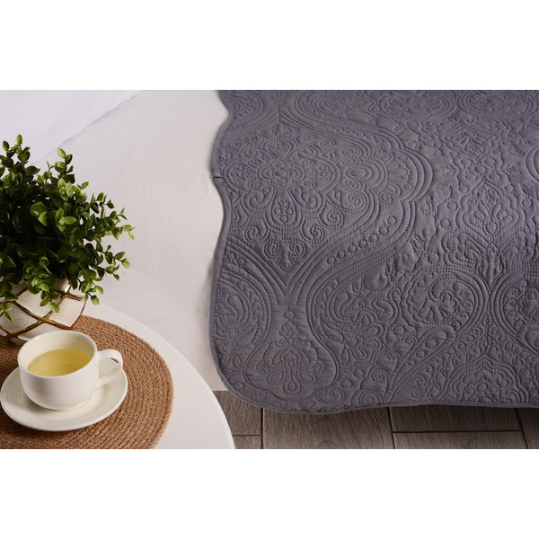 - Стьобаний візерунок додає текстурний ефект і елегантність, що робить покривало ідеальним доповненням до будь-якого інтер'єру. Його універсальний стиль легко вписується в будь-який декор, від класичного до сучасного