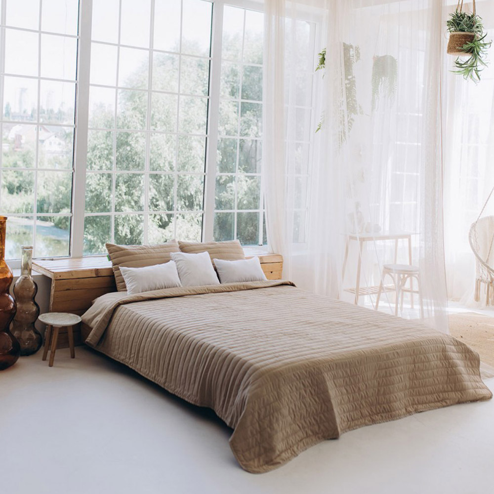 Покривало можна використовувати не тільки як декоративний елемент, але і як легку літню ковдру. Наволочки оснащені зручною застібкою-блискавкою для легкого догляду і комфортного використання.