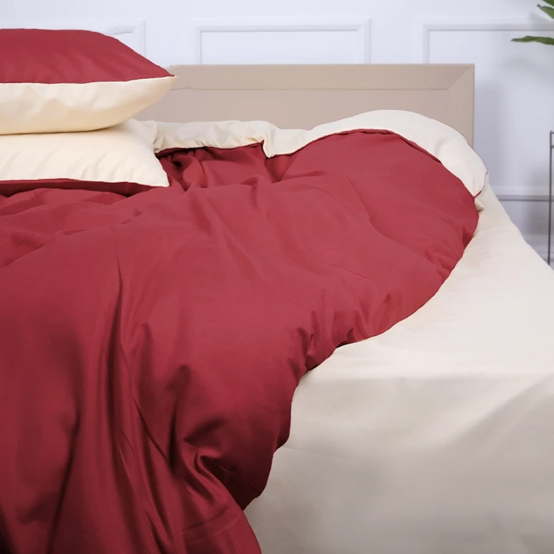 Підковдра в стильному двоколірному бордово-кремовому дизайні, виконана з мікросатину. Матеріал легкий, ніжний і м'який на дотик, виготовляється з тонкого мікроволокна. Тканина практична в експлуатації, надовго зберігає первісний колір і вигляд. Підковдра стане красивим акцентом у спальні та подарує комфортний сон.