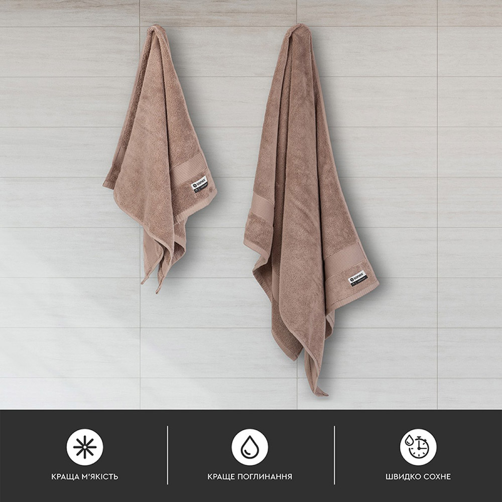 Розмір і комплектація: рушник 50х90 см (1 шт), рушник 70х140 см (1 шт)
