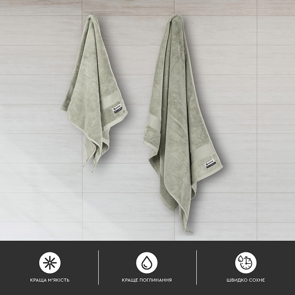 Набір із двох рушників Altea сіро-зеленого кольору з декоративним рельєфним бордюром. У наборі - банний рушник (розмір 70х140 см) і рушник для рук (розмір 50х90 см). Стильний і красивий варіант для вашої ванної кімнати. Інноваційна технологія Quick-Dry забезпечує хороше поглинання вологи та дає змогу рушникам швидко сохнути. Рушники виконані з м'якої та дихаючої 100% турецької бавовни преміум-класу. Вироби ніжні та м'які на дотик, практичні та довговічні в експлуатації, добре витримують часті прання.