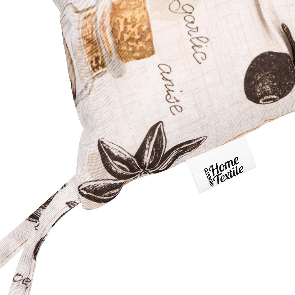 М'яка і зручна подушка з симпатичним принтом зі спеціями. Подушка зробить сидіння стільця комфортнішим, стане красивим акцентом в інтер'єрі. Подушка виконана з практичного матеріалу на основі поліестеру. Виріб кріпиться до стільця за допомогою зав'язок.