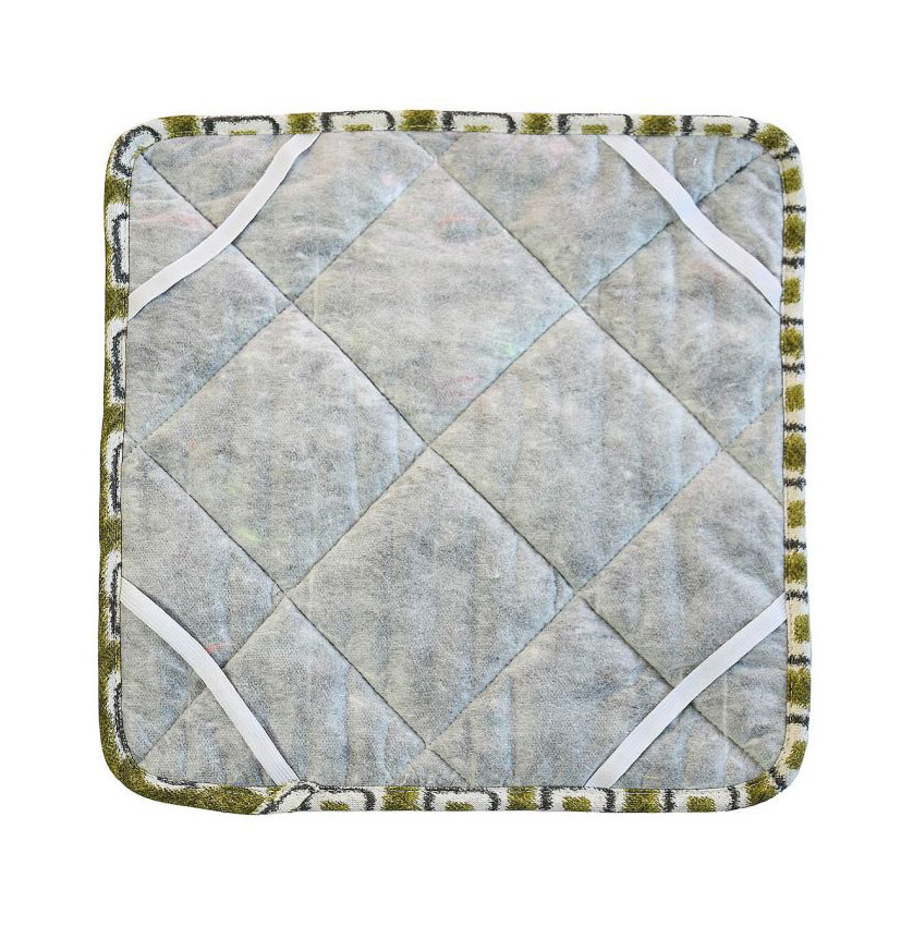 М'який та тонкий чохол з красивими рослинними мотивами. Накладка на табурет виконана з якісної іспанської тканини на основі бавовни та поліестеру, з наповнювачем із ватину. Виріб кріпиться за допомогою 4 гумок по кутах, робить сидіння табурету зручнішим.
