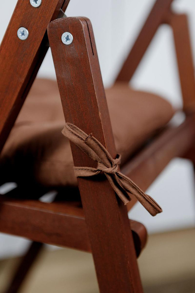 Квадратна однотонна подушка коричневого кольору. Подушка зробить сидіння стільця м'якшим і комфортнішим, відмінно доповнить інтер'єр. Подушка кріпиться до стільця за допомогою двох зав'язок. Подушка виконана з практичної міцної поліестерової тканини, а як наповнювач використовується поліефірне антиалергенне волокно холофайбер.