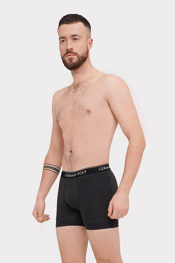 Труси-боксери темно-сірого кольору, виконані з якісної теплозберігаючої тканини. Трикотажний матеріал з вовни і віскози м'який і приємний на дотик, забезпечує тепло і комфорт.