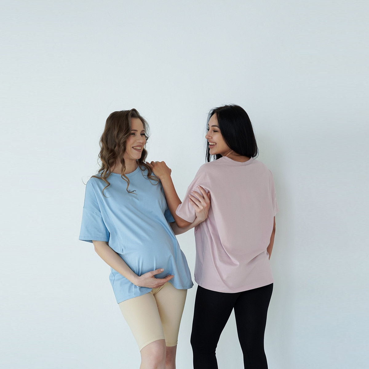 Футболка для годування блакитна - зручна і практична модель для вагітних і мам, що годують. Вільний крій підходить на будь-якому терміні, а таємні блискавки полегшують процес годування. Універсальний фасон і ніжний блакитний колір підійдуть для повсякденного носіння.